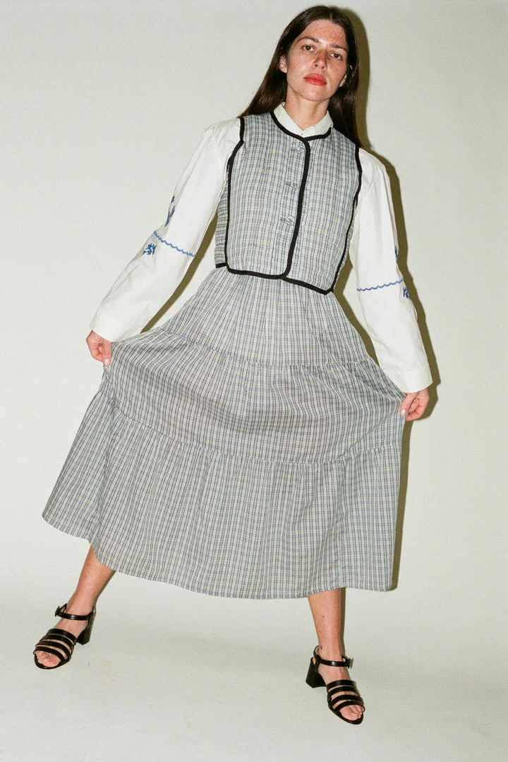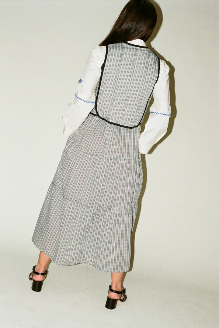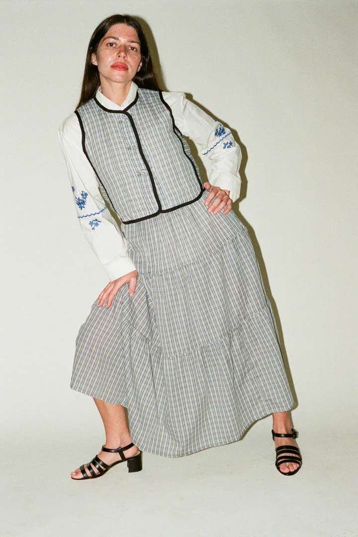 - The Pixie Skirt is a classic tiered skirt with a snug, straight waistband to balance to the volume of a full skirt. Fabricated in Sage Plaid with side inseam pockets and 2 small buttons on the waistband.