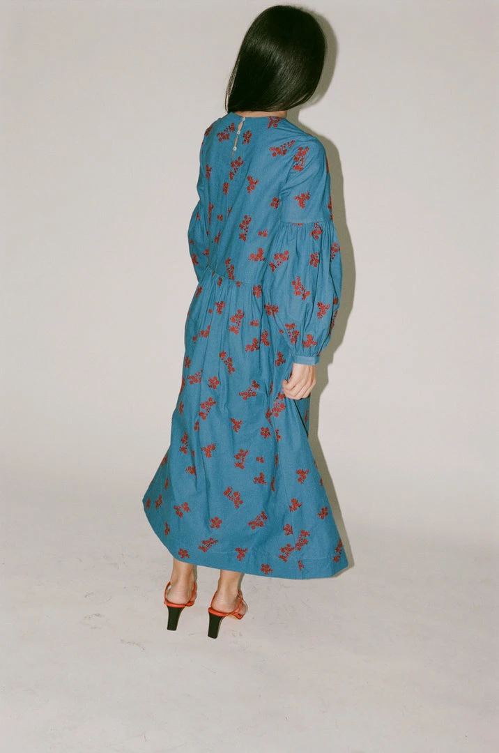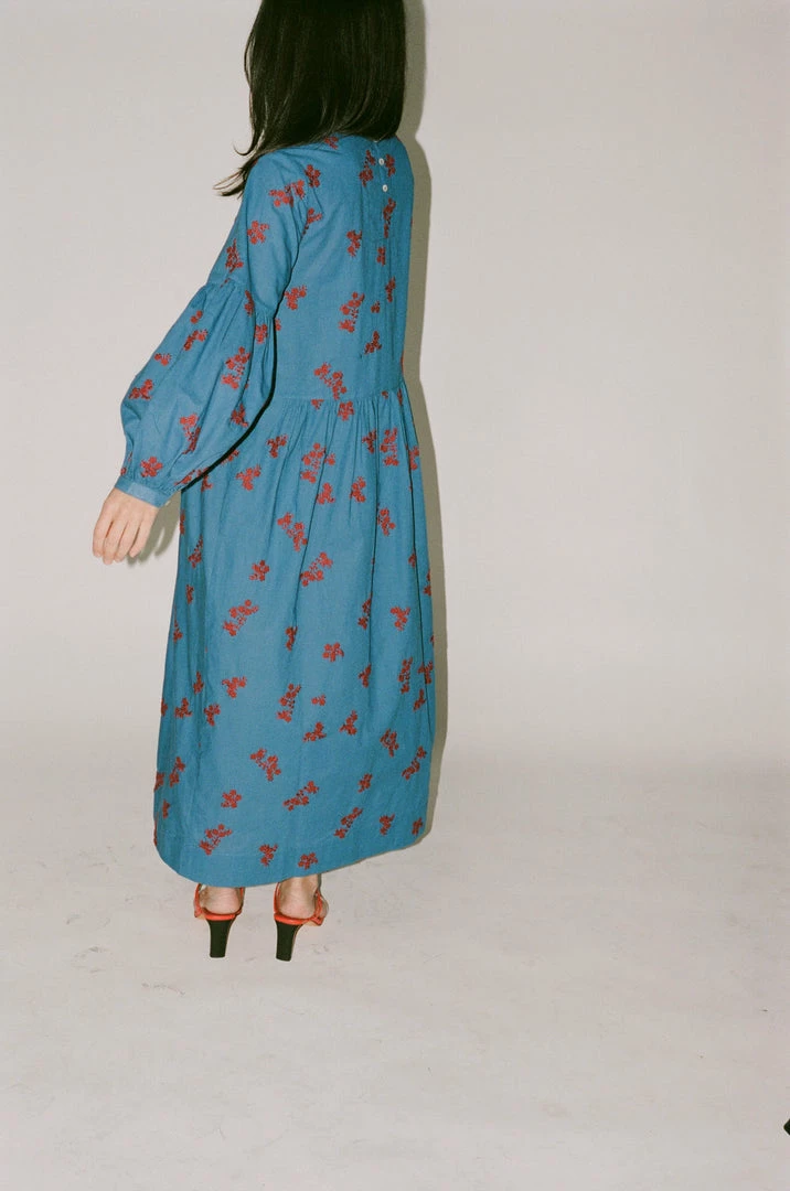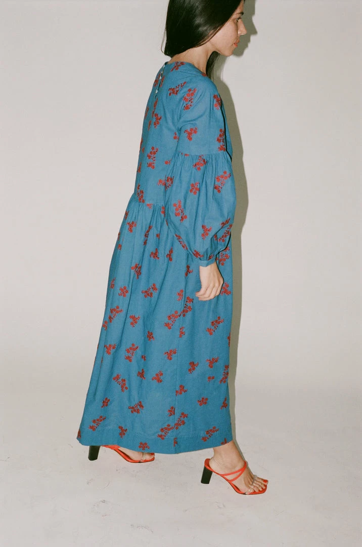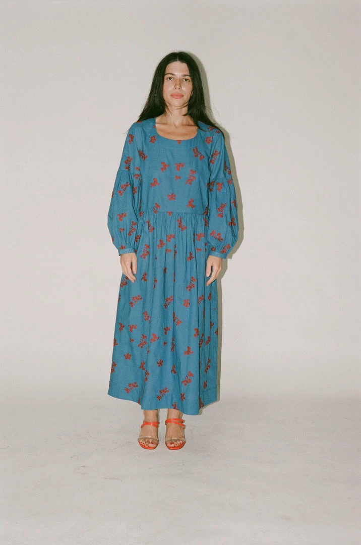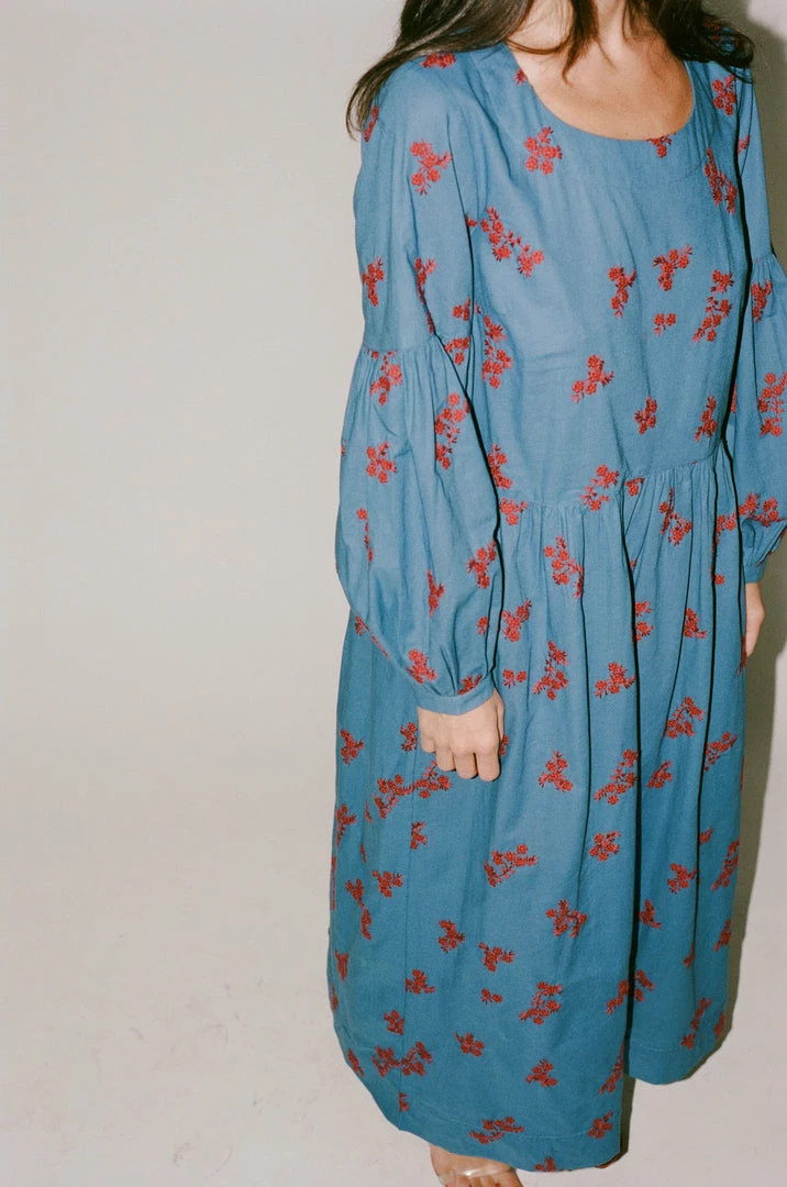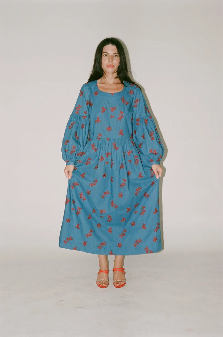 - The Violeta Dress in Caron’s twist floral embroidery is an oversizedΒ dress with a lantern shaped, raglan sleeve. A simple rounded neck with buttons at the back neck and cuffs, and gathers at the waist and sleeves, Violeta is a flattering fit that is easy to wear.