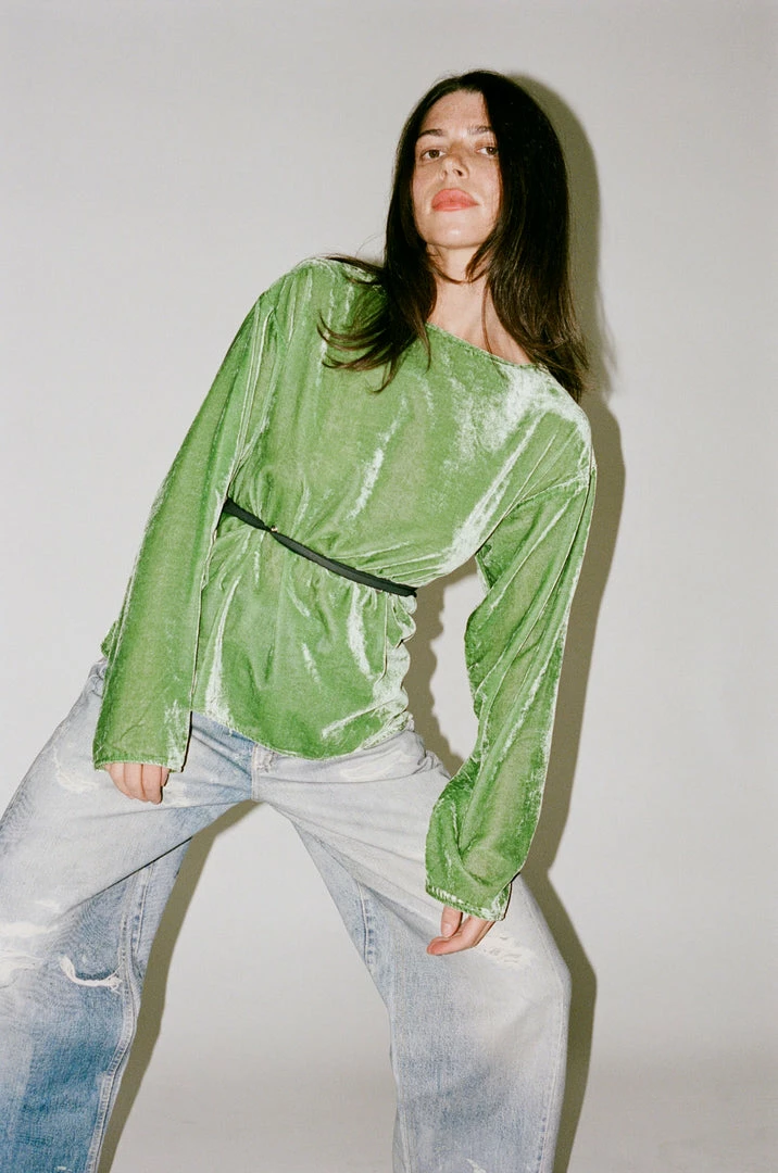- Velvet long sleeve shirt, crewneck, adjustable elastic band, can be worn multiple ways