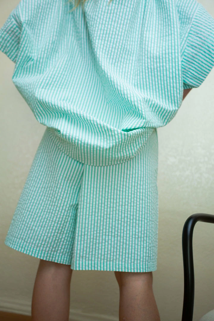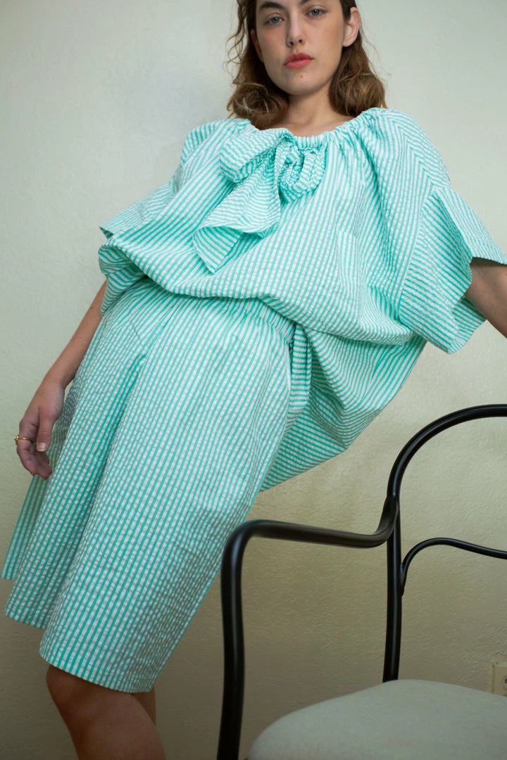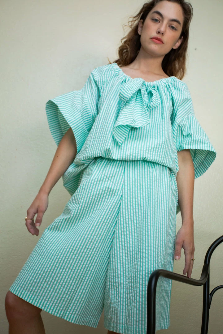 Desiree Klein Loew Culottes in Green Stripe Seersucker