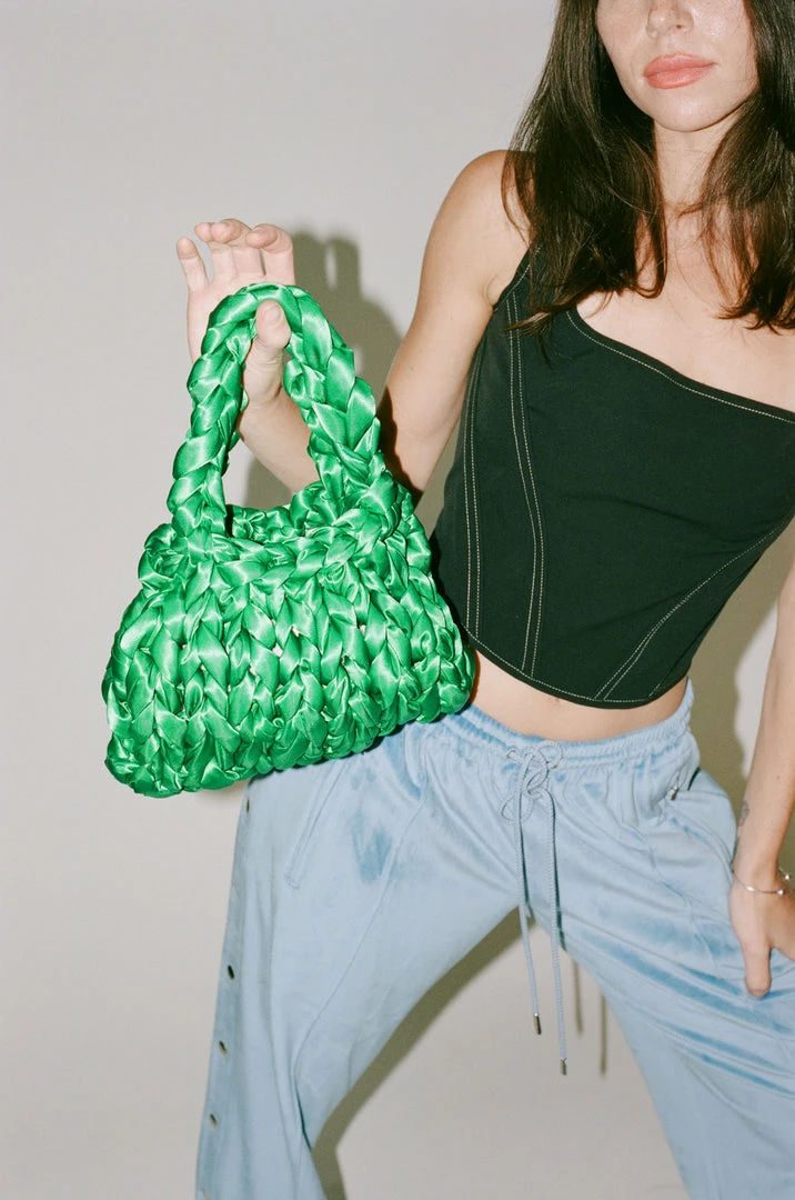 - Made by hand from Maria La Rosa’s atelier, an established Milano courtyard surrounded by potted plants, this tote is designed with old and new in mind. Made of woven crochet viscose for a bright, bold look.