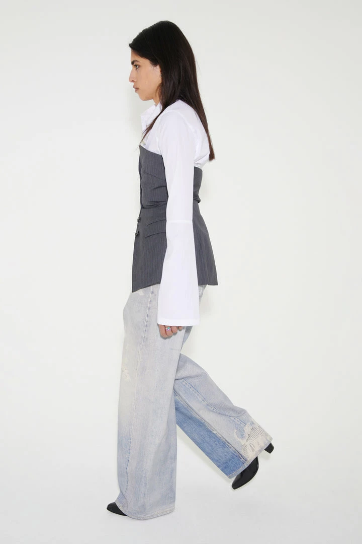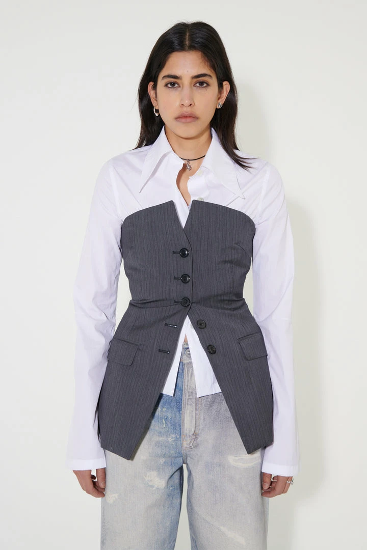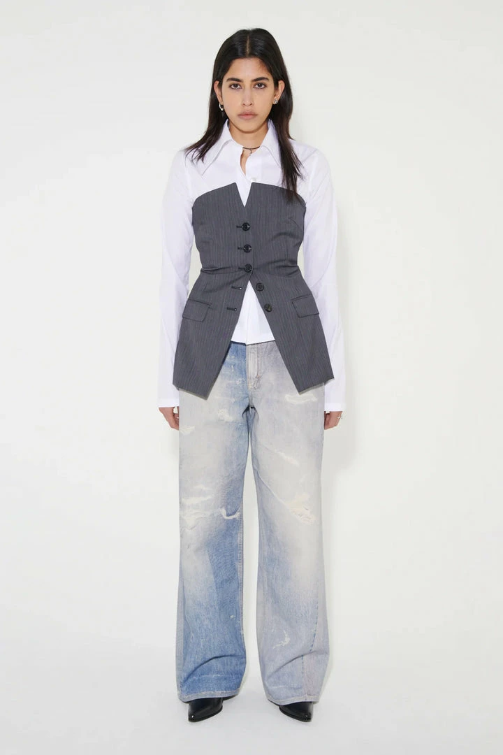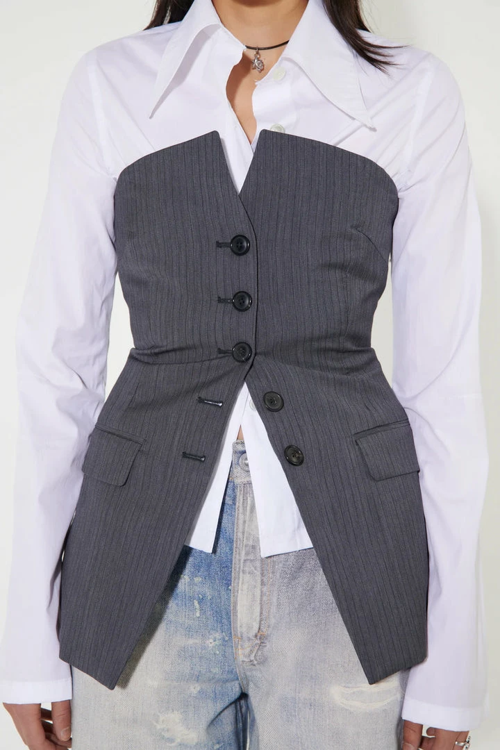Our Legacy Blazer Top in Ash Grey Pinstripe